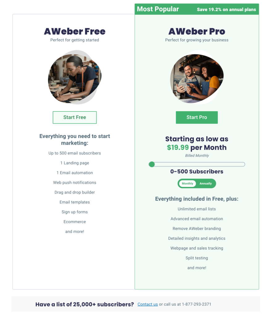 So, if you’re just getting started with email marketing and you want to get to grips with it first before spending any money, Aweber is a good option.