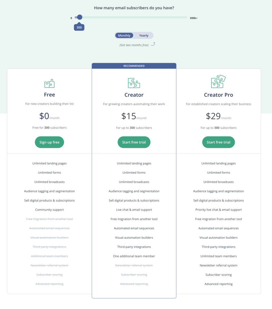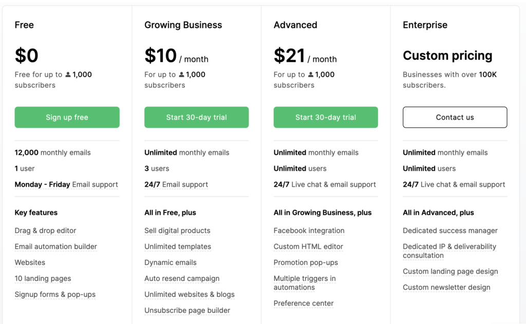 So, if you’re someone who’s just getting started with your email marketing journey and doesn’t have many subscribers, ConvertKit is a good place to start.
