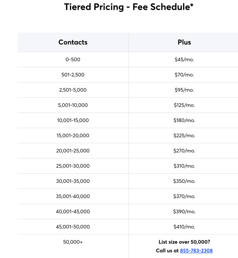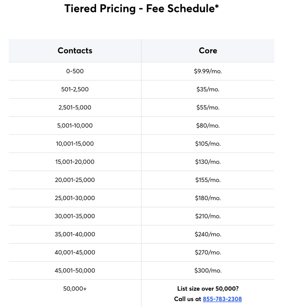 Meaning, the more email subscribers you have, the more you’ll be paying.